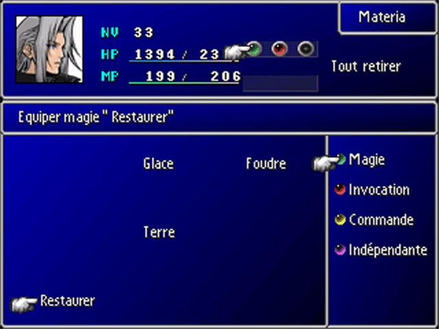 Quand Kenat récupère Sephiroth dans la prison après avoir raconté son aventure, Sephiroth n’a plu que la lame factice à équiper